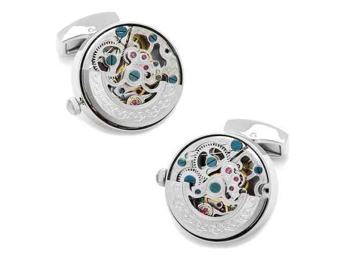 Silver Stainless Steel Kinetic Watch Movement Cufflinks