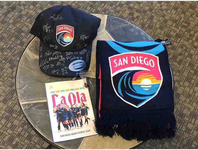 San Diego Wave FC Autographed Team Hat, Scarf, and Pin