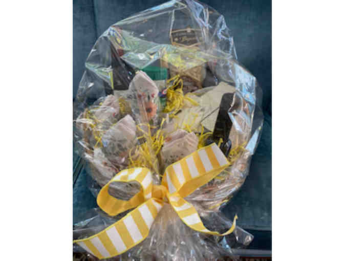 This Italian basket includes Marinara, red wine, 4 pasta bowls, 4 stemless wine glasses, 4 cloth napkins, 1lb of pasta, roasted walnut oil, balsamic vinegar, olive oil, parm cheese. This is everything you need to create an italian feast!