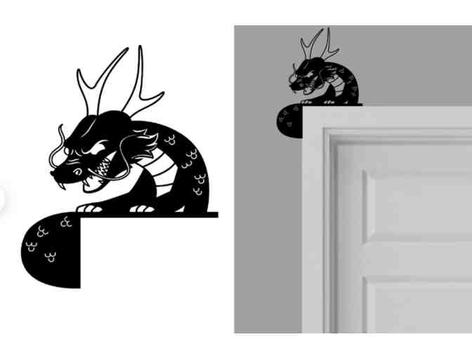 Between 3-4 inches out from the door frame on the top and side.These simply sit on your door frame, for a nice easy decoration to put up and take down. They are painted on both sides and are reversible to use on either corner of your door trim.