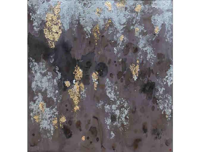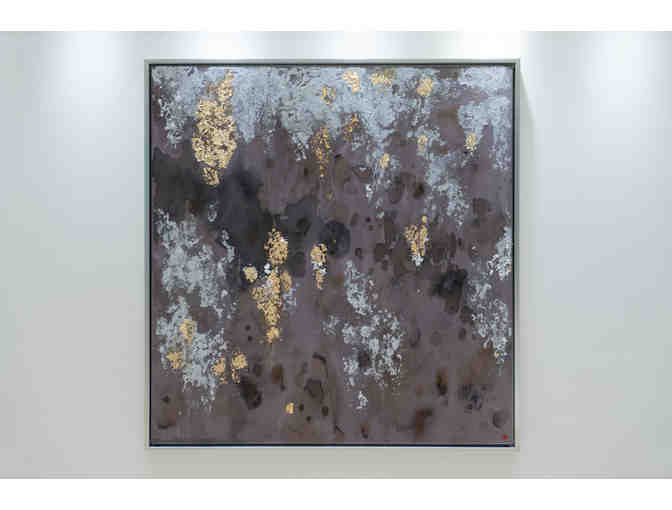42"x40" “Reste du Jardin” 24K Gold, Silver Leaf, Mother of Pearl, Pigment & Ink on Silk Canvas by artist, Christina Ho.