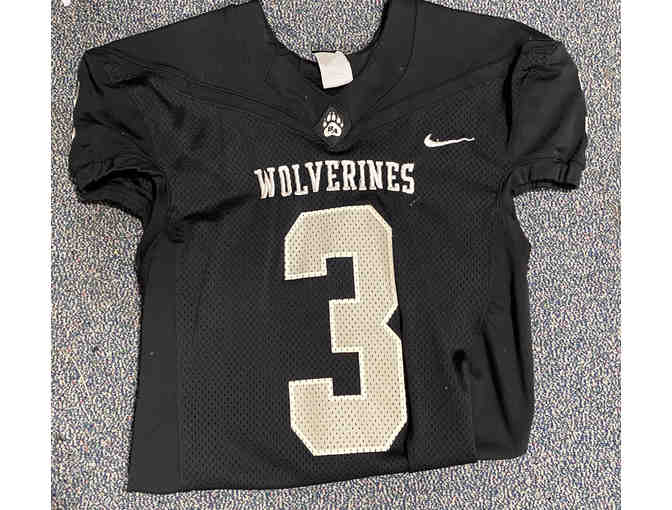 Game-worn black #3 Bridgton football jersey.