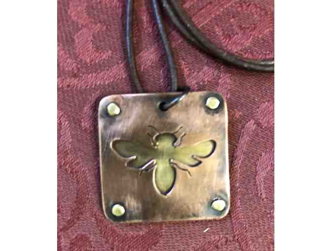 Copper and brass. Hand sawn honey bee cold connected with brass rivets.