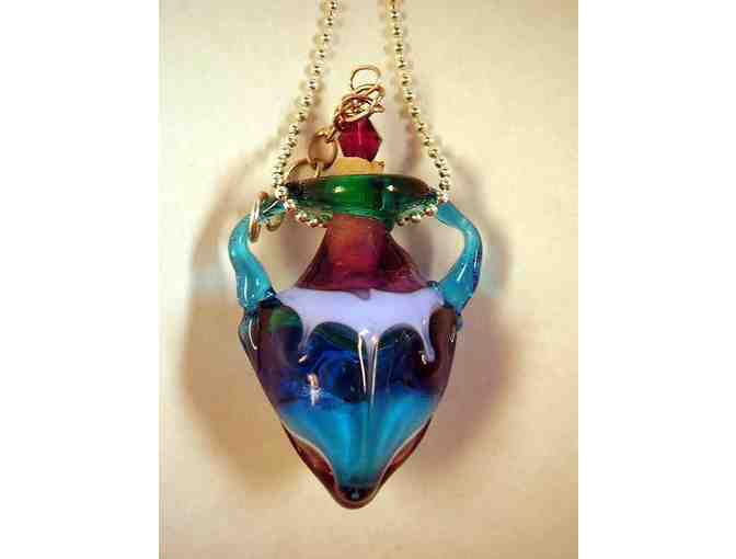 Many stories tell the significance of draping a vessel around one's neck. Our favorite is that a vessel is for keeping your life's passions safe. This graceful necklace includes an 18 inch chain. This fun and fashionable jewelry piece is sure to capture attention when you walk in any room. Make this unique jewelry piece a favorite in your accessory collection today!