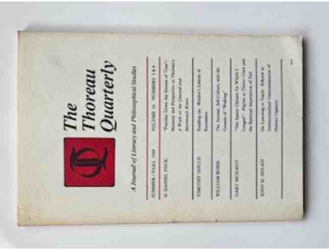 The Thoreau Quarterly: A Journal of Literary and Philosophical Studies was published in Minnesota from 1982 to 1985. Seven issues were produced in all. This set contains 6 of the 7 issues, from the remainders left of the publication. Here are: v 14 #1 Winter 1982, v 14 #2 Spring 1982, v 14 #3-4 Summer / Fall 1982, v 15 1983, v 16 #1-2 Winter / Spring 1984, v 16 #3-4 Summer / Fall 1984. Missing is the last issue from 1985. All are in good condition, though some covers are aged, especially along the spine. These are rare remainder issues.