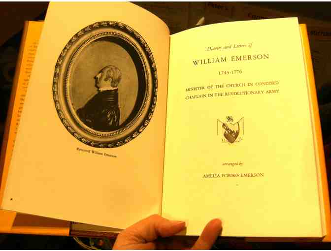 Diaries and Letters of William Emerson, 1743-1776. Minister of the Church in Concord, Chaplain in the Revolutionary Army. Arranged by Amelia Forbes Emerson. Second printing, 1973. William was the twelfth of the thirteen children of the Rev. Joseph Emerson of Malden, Mass., and was born in 1743. When 22 years of age, he received a call to the church in Concord whose minister, Daniel Bliss, had recently died. He boarded with Mrs. Daniel Bliss and within the year married her daughter Phebe. In the early 1770s, they moved to the Manse which he had built on the field beside the North Bridge. Hardcover with dust jacket, 150 pp. In good condition.