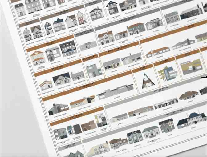 From 17th century Postmedieval English abodes all the way to 1990s “McMansions," this detailed diagram of domiciles categorizes 121 American houses in all.