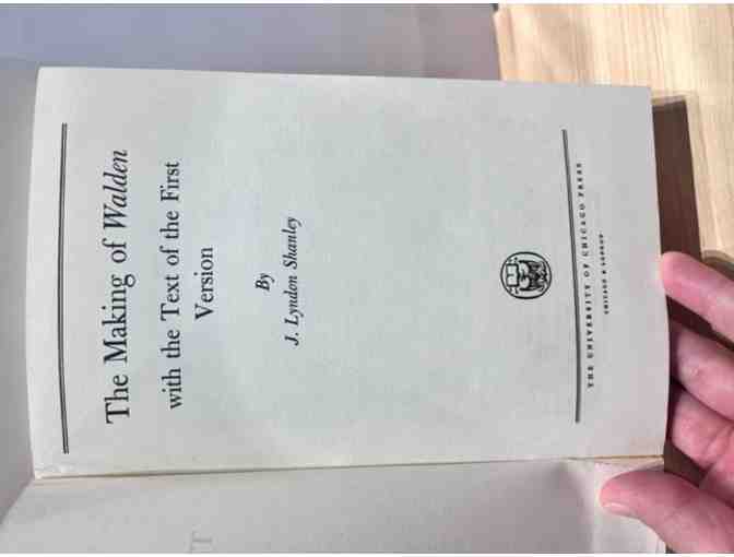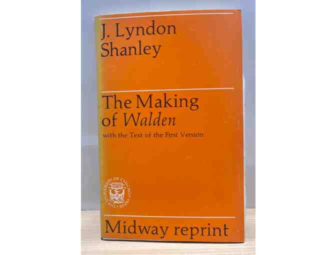 The Making of Walden, with the Text of the First Version, by J. Lyndon Shanley. The University of Chicago Press, 1957. Midway reprint in paperback, 1973. A now-classic study of Thoreau's second book. As billed, it DOES include the text of the first version of the manuscript. This paperback copy is in good shape, even though the spine has faded with time, and a bit of age shows on the outer edges of the page block. This copy has a few marks from its previous owner, J. Parker Huber.