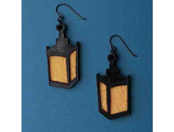 Two If By Sea earrings from ditto historical's Road to Revolution collection. Based on the lanterns that hung and in the steeple of Boston's Old North Church on the night of April 18, 1775, one of which is now in the collection of the Concord Museum.