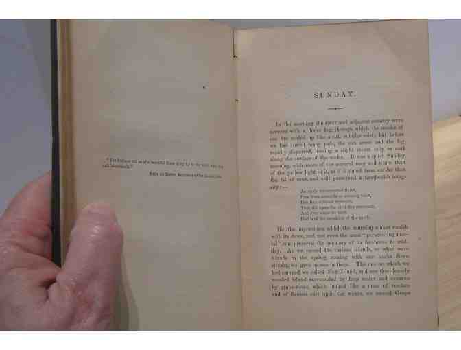 A Week on the Concord and Merrimack Rivers, by Henry David Thoreau. Ticknor and Fields, 1868. "New and Revised Edition." Hardcover, 415 pp. Gilt letters on spine. Borst A 1.2.a. Second edition, first printing. Includes 1000 changes that Thoreau made in his own copy. 1300 copies were printed in November 1867. Please note that this then is NOT one of the remainder copies that Thoreau carried up to his attic bedroom.