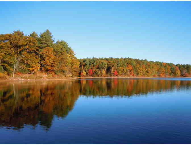 A vibrant photograph of Walden Pond in autumn, rendered by local photographer Deborah Shneider Smith. Photograph measures about 7.5 x 9.5 inches, and with the mat, the finished size is 11 x 14 inches. Keep a little bit of Walden on your wall. Deborah's work can be seen at www.newenglandsunlight.com.