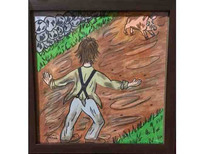8 x8 Framed illustration and children's book "Henry and the Runaway Pig."