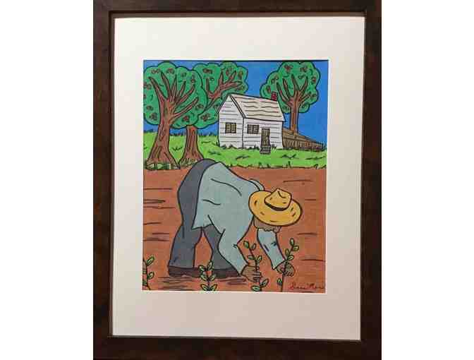 11 x 14 brown framed 8 x 10 original illustration from the young reader's book "Henry David Thoreau Bell Ringer for Justice."