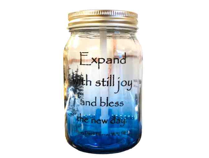 For a peaceful drink in Solitude: One reusable, dishwasher safe mason drinking jar adorned with Thoreau's reminder to "Expand with still joy and bless the new day." Comes with a reusable straw and straw cleaner.