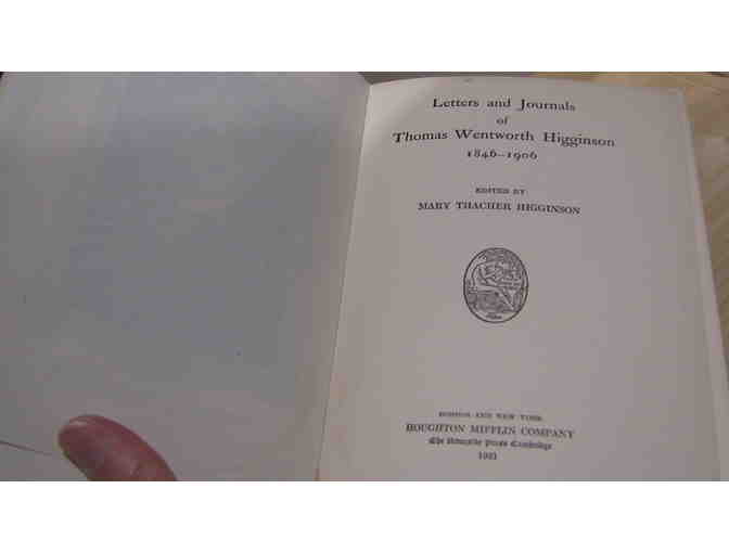 Letters and Journals of Thomas Wentworth Higginson, 1846-1906. Edited by Mary Thacher Higginson. Houghton Mifflin Company, 1921. Hardcover, 358 pp. Indexed. Blue cloth with white title paper block on spine. Flyleafs have tanned, but pages have not. An interesting collection in good condition.