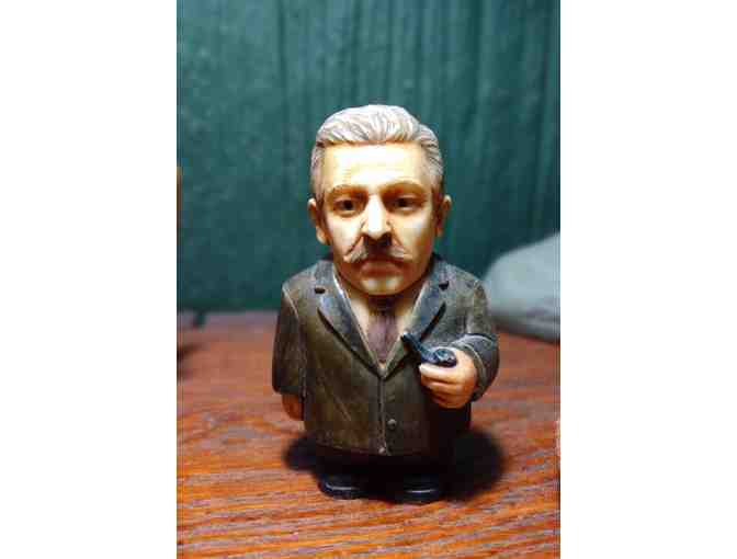 This is a Harmony Kingdom Ball Historical Pot Belly Retired William Faulkner. It is made of crushed marble. The head is removable to reveal a tiny hiding place. The figure is new, never removed from the original box.