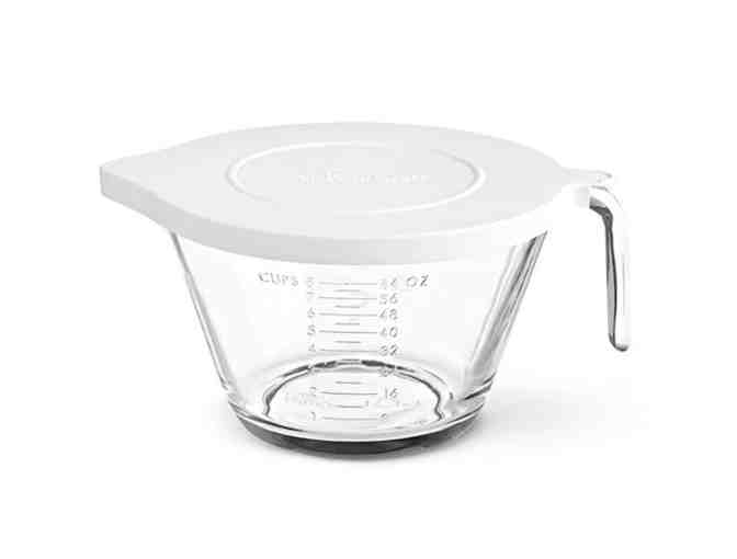Four Cup Glass Batter Bowl - Our iconic Batter Bowls are essential for all your measuring, mixing, baking, microwaving, and storing needs. The angled sidewalls with measure markings and wide base make mixing ingredients easy. The open handles and wide spout are perfect for pouring and stacking batter bowls in your cabinet. And the included lid makes it easy to store leftover batter in your fridge.
