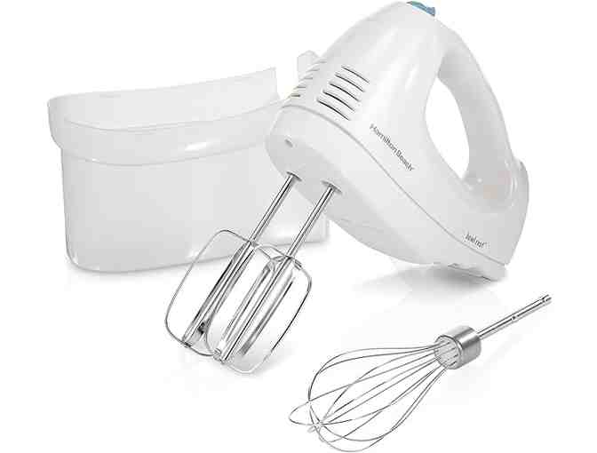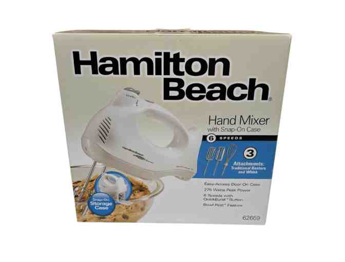 Hamilton Beach 6 Speed Hand Mixer with Snap on Case - No more lost beaters. The storage case easily snaps onto the hand mixer. The case holds the included attachments to prevent lost beaters and reduce kitchen clutter.
