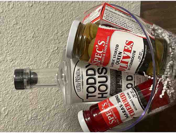 Party pack includes 1 bottle of Toddy House Vodka, olives, cherries and jello.