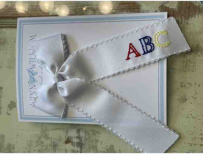 High quality handmade, hand-embroidered bow from local Lake Highlands business, Winn and William.