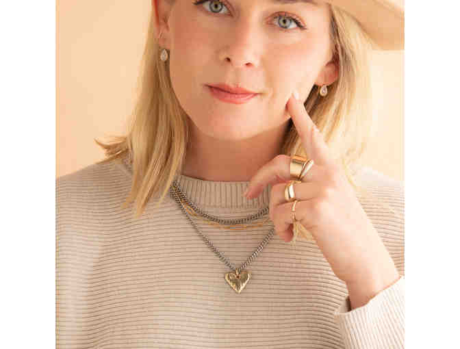Charlotte- 3 Tier Mixed Metal Necklace with hand cast heart charm. .925 Sterling Silver and 14K gold filled chain from Taylor and Tessier in Carbondale Colorado.