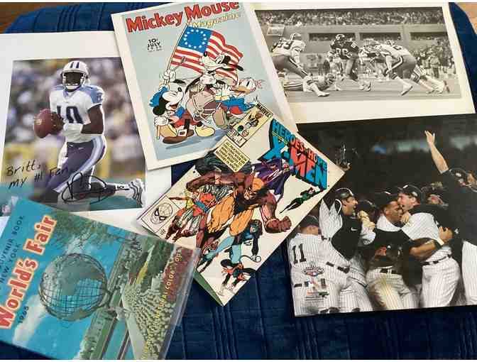 1964-65 Worlds Fair Program, Signed Titans Print, Mickey Mouse, Yankees 1996 World Series Photo, X-men Comic, Football Print Steelers vs Browns?