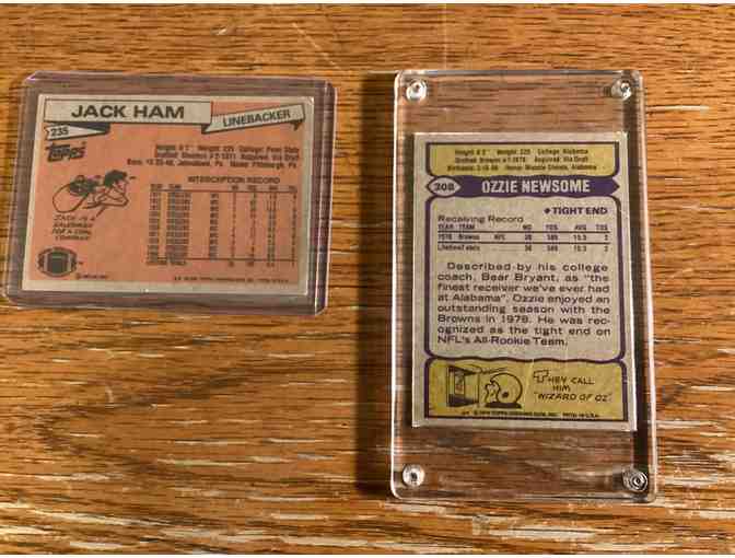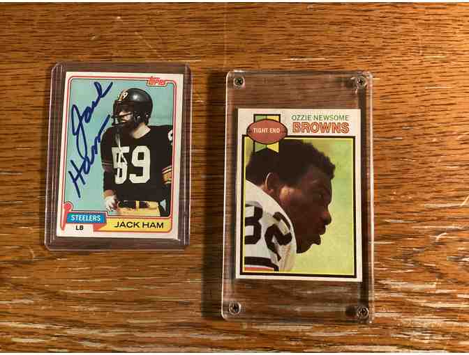 1) Hall of Famer Ozzie Newsome ROOKIE CARD 1979, TOPPS, #308, 1) AUTOGRAPHED 1981 TOPPS JACK HAM.