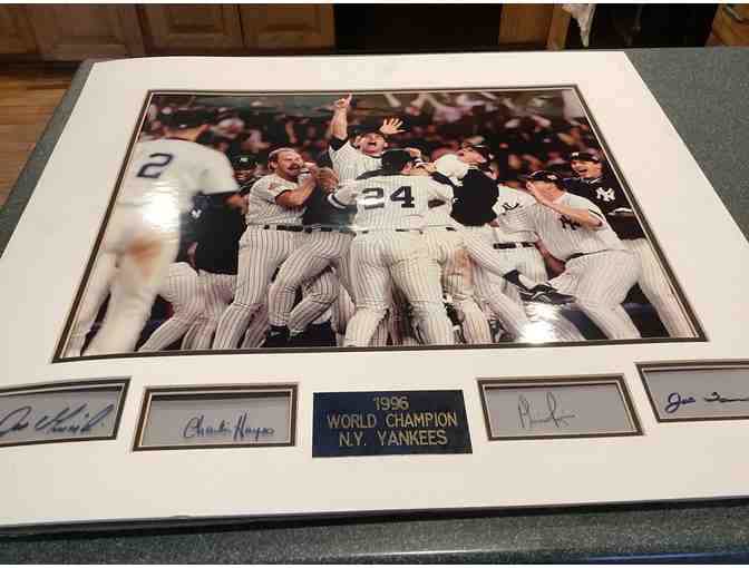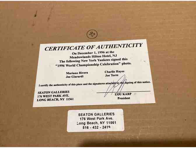 Signed by Joe Torre, Mariano Rivera, Joe Ghriraldi and Charlie Hayes.