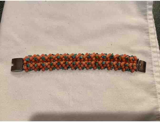Sterling Silver with Coral and Turquoise.