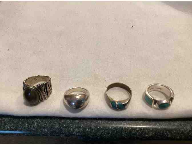 4 rings, silver, turquoise, etc