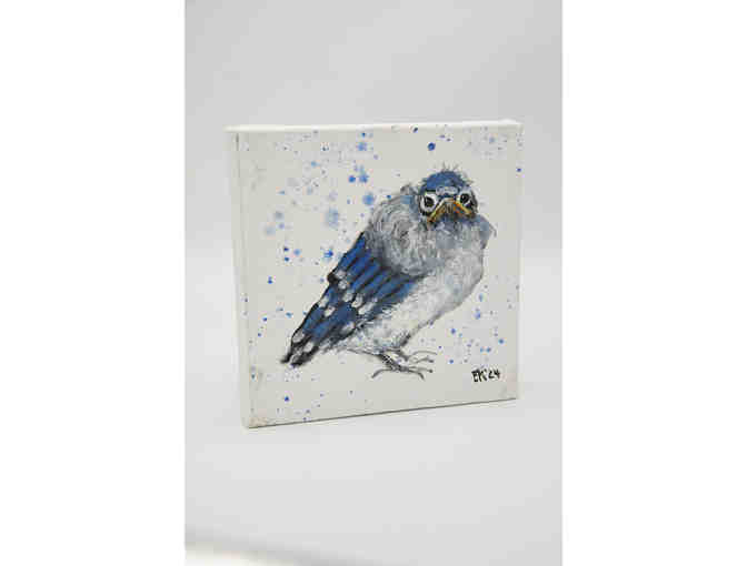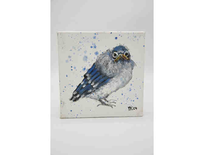 Fledgling Blue Jay - oil painting by Esther Koslow