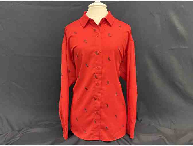 Karl Lagerfeld Paris, Womens Blouse, size L. Color: Admiral/Black