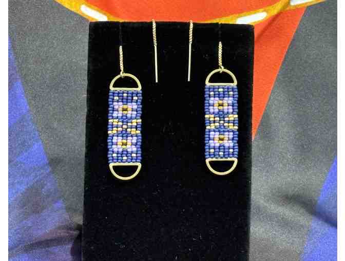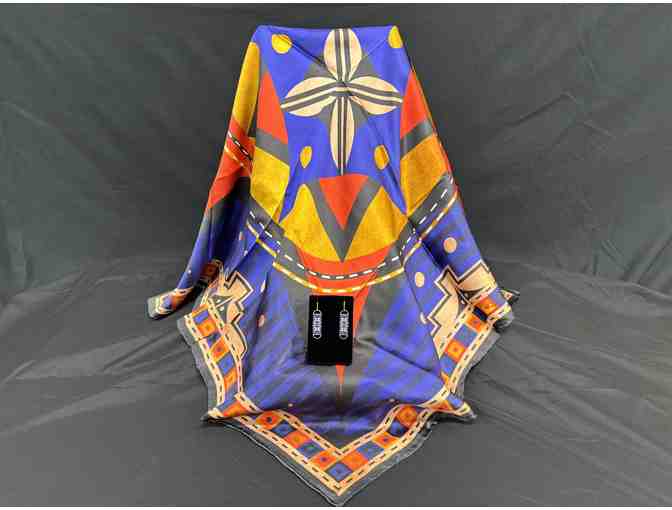 Jessica Wiarda (Hopi) 4th World & Time silk scarf, paired with beaded earrings to match
