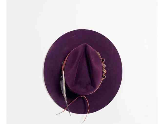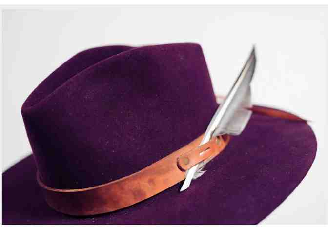 Maroon - Hand Formed Vintage,includes a Leather band with lavendar. Reclaimed Vintage Felt 10X. Hat sourced from CA. Leather sourced from AZ. TVHC custom liner and sweat band sewn into the inside