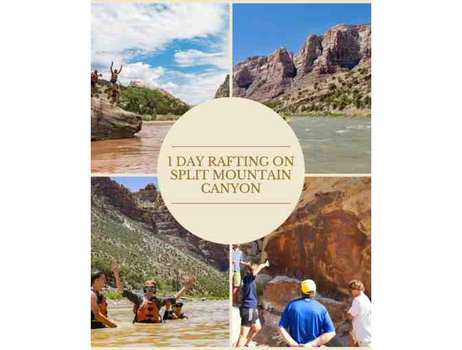1 day rafting trip for 2 people on Split Mountain Canyon. A super-scenic Utah whitewater rafting day trip on the Green River. View Native American petroglyphs