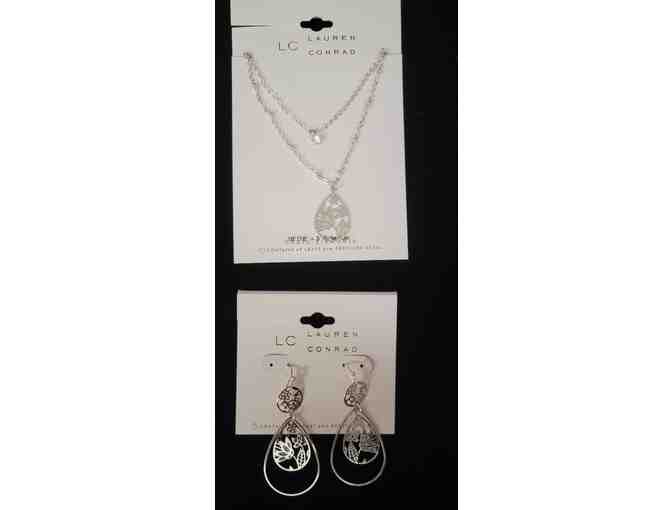Lauren Conrad Silver Tone Floral Filigree Nickel Free Teardrop Earrings and Necklacem - NWT
