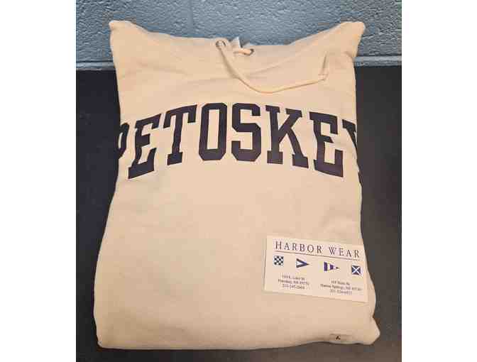 "Petoskey" hooded sweatshirt, size L, donated by Harbor Wear of Petoskey