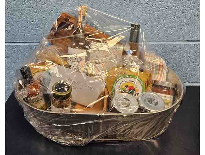 Donated by the Boys Soccer Team, this Mexican themed basket consists of a $50 Happy Taco Gift Card, 3 jars of American Spoon Food Salsa and chips, Artisan Hot Sauce, Chili/Lime Spices, Margarita Mix, Taquilla, Wooden Bowls, Burger Cutting Board, 2 hand towels and napkinsameri