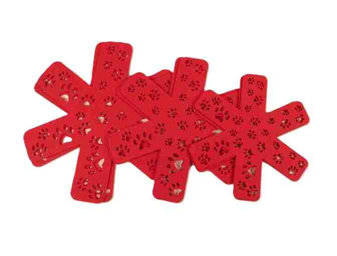 Protect your pots and pans from scratches during storage with these cute paw print dividers. Set of six, constructed of heavy felt. Two each of size: S 12 x 12; M: 14 x 14; L: 16 x 16.