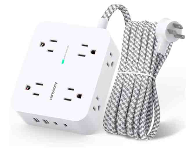 8 Outlets with 4 USB (2 USB C) Charging Ports, Multi Plug Outlet Extender, 5 ft Braided cord, Flat Plug Wall Mount.