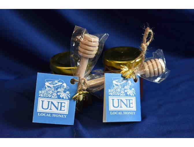 Four small jars of UNE's new local honey!