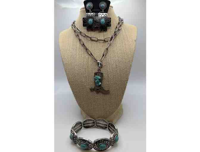 Turquoise and Silver Necklace, Earrings, and Bracelet