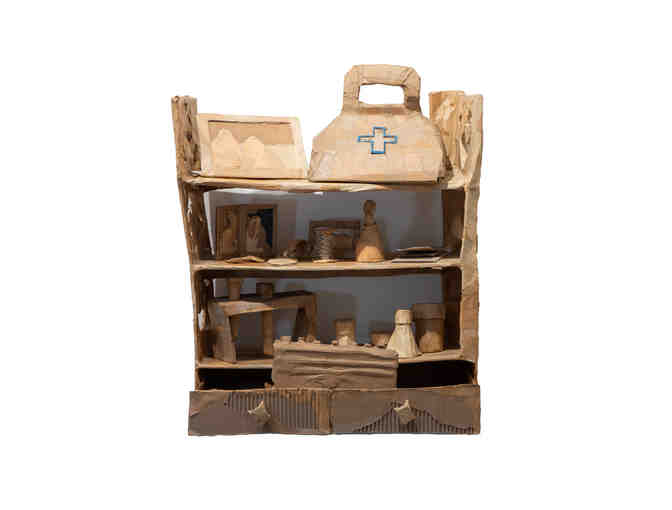 Verloren und Erinnert (Lost and Remembered), 2022-2024 , 18 x 5 x 24 inches (shelf) w/ objects , Recycled Cardboard and papier-mch