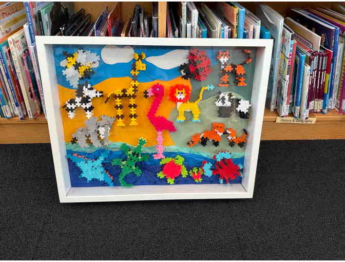 A wild scene out of the jungle. An animal kingdom crafted by the Orange Room from Plus Plus cubes to create a rich wildlife scene. Take home this vibrant 3-D scene today and remember your Primary years.
