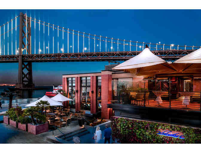 Waterbar is situated in a prime location on the waterfront of San Francisco’s Embarcadero, just south of the “Cupid's Span" sculpture, featuring panoramic views of the bay, Bay Bridge, Treasure Island, and the San Francisco skyline.