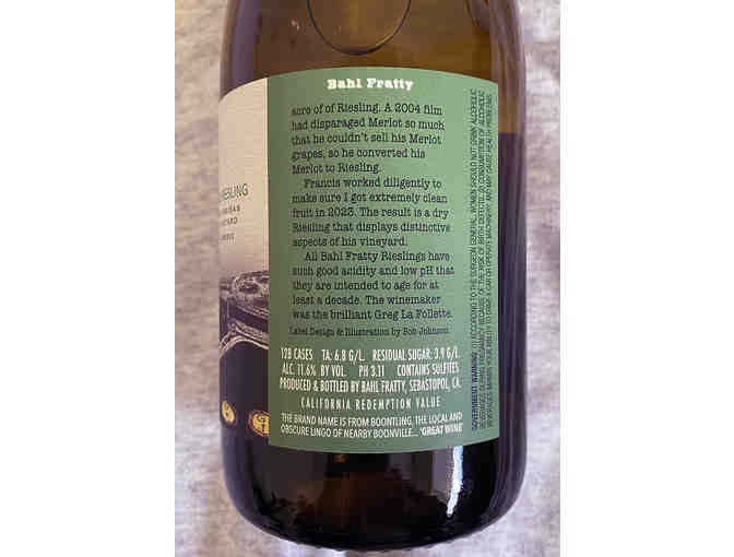 Bahl Fratty, the brand name on the wine, means “great wine” in the obscure language of Boontling once spoken by settlers in the Anderson Valley wine region in northern California.