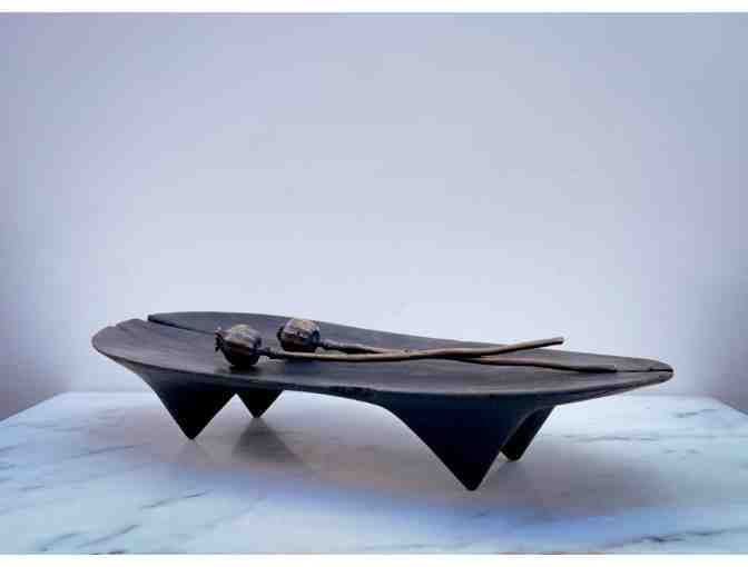 Offering, 2025, bronze coulé, hêtre brûlé, 15 po x 4 po x 7 po