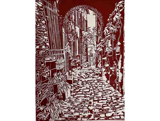 'Siena' captures a moment in time during one of my solo adventures abroad. Entering the small cobblestone alleyway captured here in a linocut print, I felt transported back to the early Renaissance. I almost expected to catch a glimpse of one of the city's great artists: Duccio di Buoninsegna, Simone Martini or Ambrogio Lorenzetti.