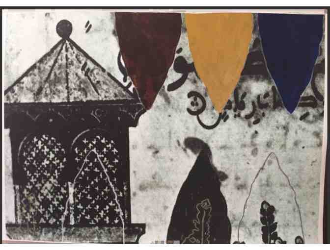 The work draws on symbolism, forms, and drawings which are found in manuscripts in different. The triangular form creates an interesting field in its relation to the drawn rectangles.