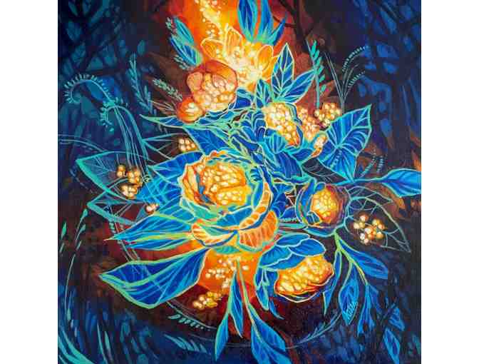 My latest body of work is entitled Grow, Glow & Flow: A series of paintings celebrating inner light. I set out to conceptualize and create a series of paintings exploring the concept of inner light as represented by luminescent flora and fauna. My work reflects my journey of self-discovery and growth. I am using these paintings to focus on exploring my inner world and building self-trust and confidence, particularly after a challenging period.
